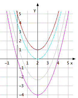 x2 - y - 4x + 4 + k(x2 - y - 4x + 5) = 0Per k = 0 → y = x2 - 4x + 4