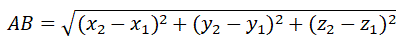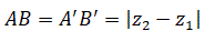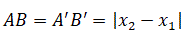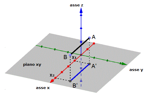 Essendo A'B' un segmento del piano xy possiamo determinare la sua lunghezza con la stessa formula utilizzata nel piano: