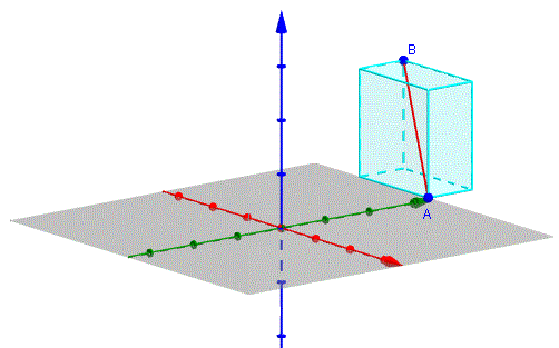 In questo modo il segmento AB risulta essere la diagonale di un parallelepipedo rettangolo con gli spigoli paralleli agli assi coordinati e con le tre dimensioni che misurano rispettivamente: