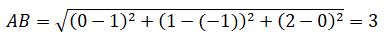 Determiniamo la lunghezza del segmento che ha per estremi A(1,-1,0) e B(0,1,2).