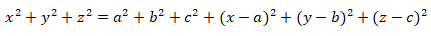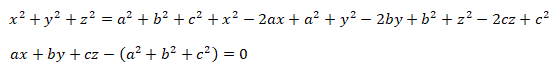 Per determinare l'equazione generale del piano si può utilizzare il teorema che afferma che data una retta r e un punto P che non appartiene a r esiste un unico piano α passante per P e perpendicolare a r. Consideriamo quindi una retta r passante per l'origine, un punto P(x, y, z) che non appartiene a r e il piano α passante per P e perpendicolare a r nel punto A(a, b, c).