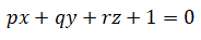 e sostituendo nell'equazione px+qy+rz+1=0 si ha