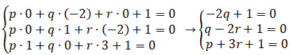 che è un'equazione lineare con solo tre parametri che possiamo determinare imponendo che i punti A, B, C appartengono al piano di equazione px+qy+rz+1=0.