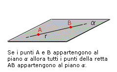 Assioma2: Se due punti appartengono ad un piano allora anche la retta che li contiene appartiene al piano.