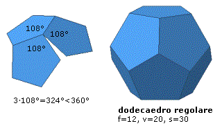 Se le facce sono pentagoni regolari, l'unico caso possibile per gli angoloidi è di avere 3 facce ed esiste effettivamente un poliedro con questo tipo di angoloidi: è il dodecaedro regolare (12 facce, 20 vertici, 30 spigoli).