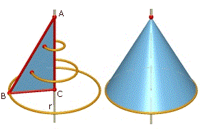 Ad esempio, dalla rotazione completa del triangolo rettangolo ABC attorno alla retta r che contiene il lato AC si genera il cono in figura.