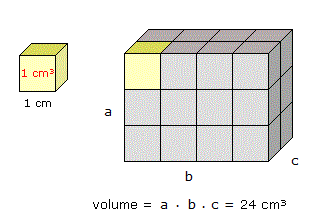 Pertanto il volume V di un parallelepido rettangolo di dimensioni a, b , c è dato dalla formula:V = a ⋅ b ⋅ c