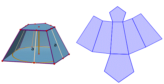 Ragionando sul tronco in figura che ha le basi pentagonali e indicando con a la misura dell'apotema del tronco e rispettivamente con
