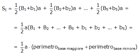 le misure dei lati della base maggiore e della base minore, l'area della superficie laterale del tronco è uguale alla somma delle aree dei trapezi.
