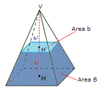 Le due piramidi sono simili e quindi le aree delle basi sono proporzionali al quadrato delle altezze: