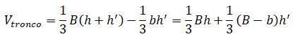 Il volume del tronco è dato dalla differenza tra il volume della piramide avente per base la base maggiore e il volume della piramide avente per base la base minore, quindi: