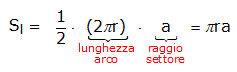 Sappiamo calcolare l'area di tale settore: è uguale al semiprodotto della lunghezza dell'arco per la misura del raggio del settore. Pertanto l'area della superficie laterale del cono misura: