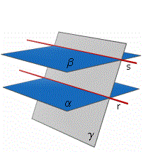 Proviamo che r ed s sono parallele. Le due rette appartengono al piano γ ; se, per assurdo, avessero un punto P in comune, P apparterrebbe sia ad α (appartenendo ad r) sia a β (appartenendo ad s) e ciò contraddice il parallelismo dei piani. Ne segue la tesi.