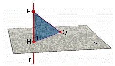 Nella figura è stata indicata con r la retta perpendicolare per P al piano α. Allora la distanza del punto P dal piano α è PH dove H è il punto di intersezione di r con α. La nozione cosí introdotta è in armonia con l'idea intuitiva che la distanza tra due oggetti geometrici debba essere la lunghezza del percorso più breve tra i due oggetti.