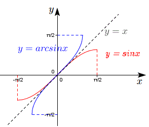 La funzione inversa della restrizione di y=sin x nell'intervallo [-Π/2, Π/2] è chiamata arcoseno e indicata con la scrittura: