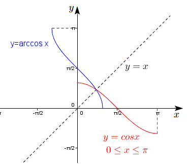 y = arccos x.