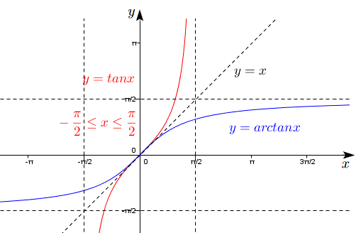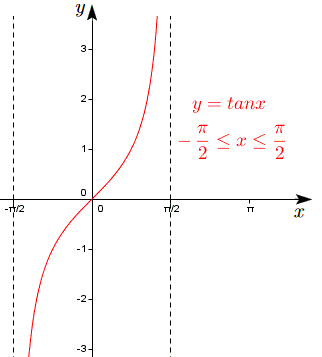 La funzione inversa della restrizione di y=tan x nell'intervallo [-Π/2, Π/2] è chiamata arcotangente e indicata con la scrittura: