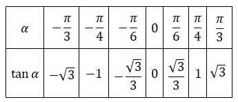 Inoltre essendo la funzione periodica di periodo Π è sufficiente tracciare il grafico nell'intervallo [-Π/2, Π/2] e poi completarlo ripetendo periodicamente sia a sinistra che a destra la parte del grafico già tracciato. Iniziamo a costruiamo la tabella α e tan α scegliendo alcuni opportuni angoli:
