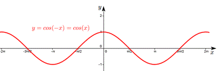 è simmetrica rispetto all'asse y e si ottengono simmetrizzando rispetto all'asse y rispettivamente y=cos(x), y=sin(x), y=tan(x). In particolare, essendo il grafico di y=cos(x) simmetrico rispetto all'asse y il grafico di y=cos(-x) coincide con quello di y=cos(x).