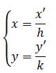 dove h e k sono due numeri reali positivi. Ricaviamo x e y dalle equazioni della trasformazione: