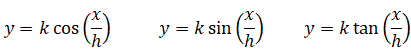si ottiene dilatando o comprimendo rispettivamente y=cos(x), y=sin(x), y=tan(x) orizzontalmente di un fattore 1/h e verticalmente di un fattore k.