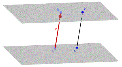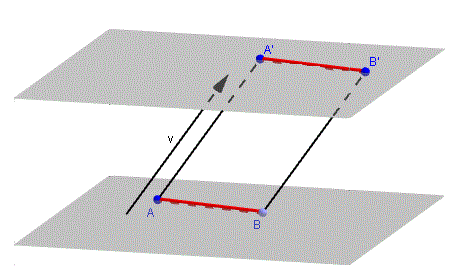 La traslazione conserva le distanze tra punti ed è pertanto un'isometria. Ad esempio nella seguente traslazione del segmento AB mediante il vettore v