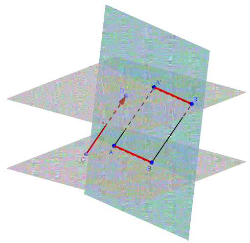 al punto A corrisponde il punto A' e al punto B corrisponde il punto B'. Essendo AA' parallelo a BB' e AA' ≅ BB' i punti AA'BB' sono complanari e quindi il quadrilatero AA'BB' è un parallelogramma.