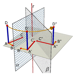 Componendo due simmetrie rispetto a due piani perpendicolari, che si incontrano nella retta r, si ottiene una simmetria assiale avente per asse la retta r di intersezione dei due piani.