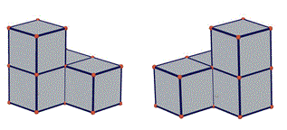 Entrambi sono formati da quattro cubi congruenti e anche gli angoli diedro corrispondenti sono congruenti. Inoltre, sono simmetrici rispetto a un piano