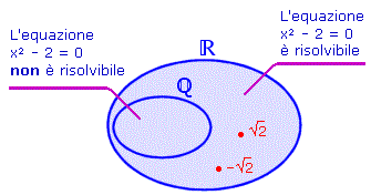 Questa equazione non è risolvibile se operiamo nell'insieme Q dei numeri razionali. Per trovare la soluzione