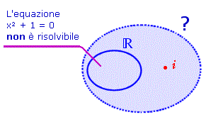 non è risolvibile se operiamo nell'insieme R dei numeri reali. Non esiste infatti un numero reale il cui quadrato sia uguale a -1. In generale, il quadrato di un numero reale è sempre non negativo. Ciò significa che non esistono radici quadrate algebriche reali di un numero negativo e, come conseguenza, un'equazione di secondo grado, se ha il discriminante Δ negativo, non ha soluzioni. Nell'insieme R c'è ancora una situazione di insufficienza. Pertanto si decise di operare un'ulteriore estensione dell'insieme numerico in modo da eliminare anche questa insufficienza. Fu introdotto un nuovo numero, e dunque un nuovo simbolo, chiamato unità immaginaria e indicato con la lettera minuscola