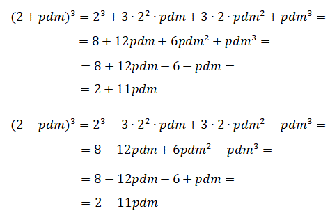 Con queste regole e con la formula del cubo di un binomio trovò che: