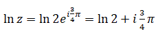 ln z = ln (3 + 0i) = ln 3 + 0i = ln 3
