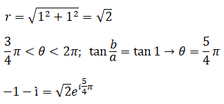 Calcoliamo il modulo e l'argomento del numero complesso -1 -i e scriviamolo in forma esponenziale: