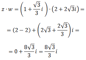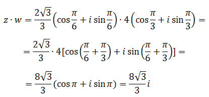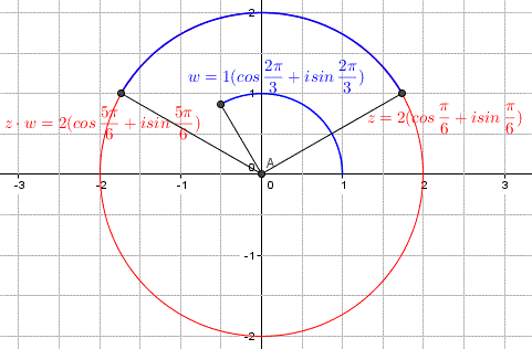 Il loro prodotto z⋅w è un numero complesso che ha per modulo lo stesso modulo di z e per argomento la somma dei due argomenti: