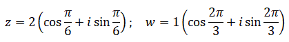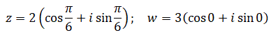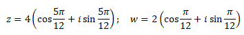 z1 = r1(cos Θ1 + isin Θ1) e z2 = r2(cos Θ2 + isin Θ2)