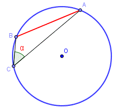 Tramite le relazioni tra lati e angoli di un triangolo rettangolo possiamo determinare la misura di una corda di una circonferenza di raggio r in funzione degli angoli alla circonferenza che insistono sugli archi sottesi dalla corda. Consideriamo una circonferenza di raggio r, una sua corda AB e un angolo α che insiste sulla corda AB e sull'arco AB minore.