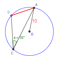 AB = 2r ⋅ sin 30° = 2⋅10⋅1/2 = 10 cm