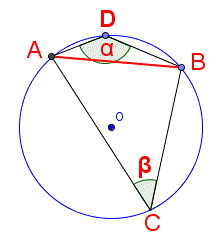 che sono le sole possibili ampiezze degli angoli alla circonferenza che insistono su uno dei due archi AB. In particolare gli angoli che insistono sull'arco minore di AB hanno per ampiezza la prima soluzione, mentre gli angoli che insistono sull'arco maggiore di AB hanno per ampiezza la seconda soluzione.