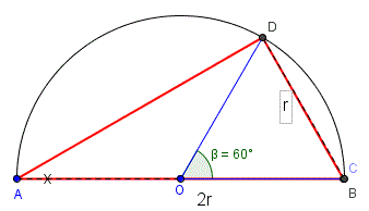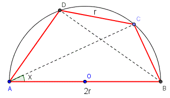 Sia ABCD un quadrilatero inscritto in uma semicirconferenza di diametro AB=2r e avente il lato CD=r.