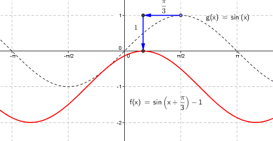 Come si vede dal grafico la funzione f(x) è ottenuta con una traslazione di vettore v(-Π/3, -1) sul grafico di sinx e assume il valore massimo quando l'angolo è di 30°.