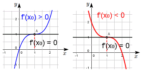 Se x0 è un punto di flesso a tangente orizzontale la curva cresce (o decresce) a sinistra di x0 e cresce (o decresce) a destra di x0. In altre parole nel punto di flesso a tangente orizzontale la curva non cambia andamento.
