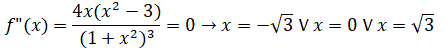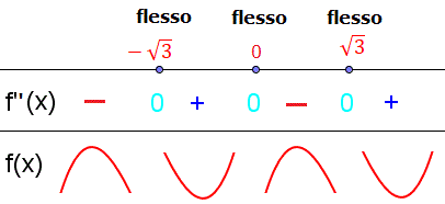 I punti x=-√3, x=0, x=√3 5/3 sono di flesso perchè sono zeri di f"(x) e f"(x) cambia segno nell'intorno di questi punti come si vede nel grafico della funzione