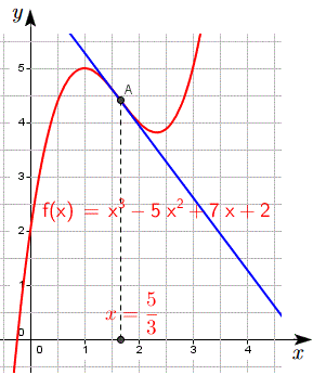 Il punto x=5/3 è un flesso perchè è uno zero di f"(x) e f"(x) cambia segno nell'intorno di x=5/3, inoltre essendo f'(x0) diverso da zero il flesso è obliquo come si vede dal grafico della funzione.