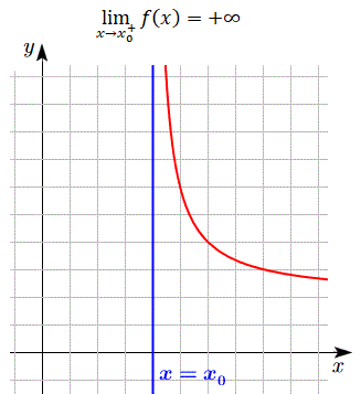 Il limite della funzione per x che tende a x0 da destra è uguale a più infinito: