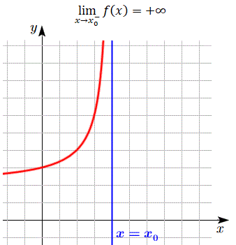 Una retta perpendicolare all'asse delle x e di equazione x=x0 è detta asintoto verticale per la funzione f(x) se il limite della funzione tende a un valore infinito per x che tende al numero reale finito x0 da destra o da sinistra. Si possono presentare quattro situazioni: