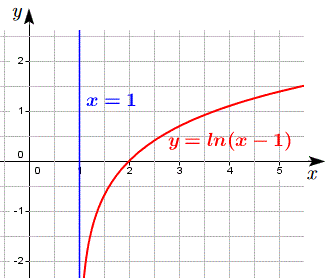 La retta di equazione x=1 è quindi un asintodo destro di y = ln(x - 1) come si può vedere dal grafico della funzione.