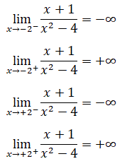 Per ricercare gli eventuali asintoti verticali dobbiamo calcolare i limiti della funzione per x che tende a destra e a sinistra di -2 e per x che tende a destra e a sinistra di +2.