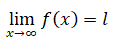 Una retta perpendicolare all'asse delle y e di equazione y=l con l∈R è detta asintoto orizzontale per la funzione f(x) se e solo se si verifica: