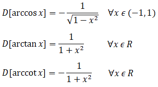 Applicando lo stesso procedimento possiamo determinare le derivate delle inverse delle altre funzioni trigonometriche: